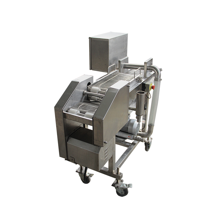 天婦羅裹漿機自動完成產(chǎn)品的上漿過程,稀漿、濃漿均可。產(chǎn)品經(jīng)上下網(wǎng)帶,在漿液中沾滿漿液,上漿后的產(chǎn)品經(jīng)風淋,避免過多的漿液帶入到下一工序。