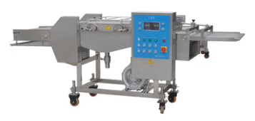 濃漿機(jī)是產(chǎn)品經(jīng)過(guò)上下輸送網(wǎng)帶夾持,在漿液中產(chǎn)品均勻粘附面漿。通過(guò)強(qiáng)有力的風(fēng)刀時(shí),把多余的漿液被吹落。防止多余的漿液然后輸入到下一工序。產(chǎn)品適合于天婦羅產(chǎn)品和裹濃漿產(chǎn)品。