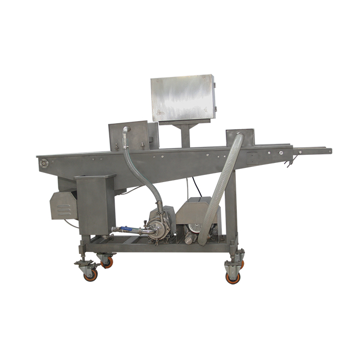 淋漿機是把產(chǎn)品通過淋漿部分后,下部由下淋漿槽上儲存的漿液均勻粘附上,上部由漿幕將漿液粘附上。通過風(fēng)刀時,多余的漿液被吹落。然后輸入到下一工序。裹漿機適合于雞肉、牛肉、豬肉、魚、蝦等海鮮產(chǎn)品,肉餅上漿機適用于上面包屑和上粉前的工藝。雞塊上漿機可以對市場上流行的漢堡肉餅、麥樂雞塊、魚香漢堡肉餅、土豆餅、南瓜餅、肉串等產(chǎn)品進行上漿處理,是食品工廠理想的上漿設(shè)備。