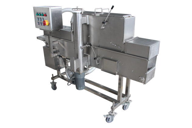 裹粉機(jī)能自動(dòng)完成產(chǎn)品的上粉過程,適用于各種預(yù)上粉、混合粉等。產(chǎn)品進(jìn)入下網(wǎng)帶,底部及側(cè)面沾滿粉,從上料斗流下的粉將產(chǎn)品上部覆蓋,經(jīng)壓輥壓緊(上下網(wǎng)帶上的粉厚度可以方便調(diào)節(jié)),上粉后經(jīng)過風(fēng)管,將多余的粉吹落。進(jìn)入下一道程序。