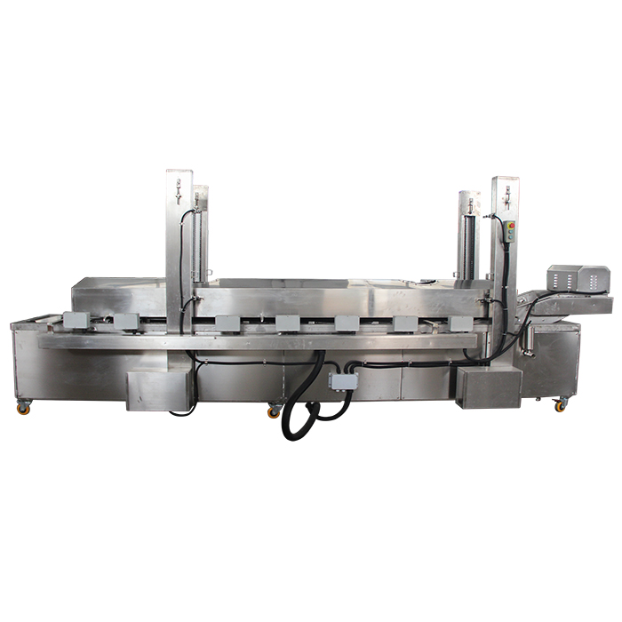 電加熱油炸機(jī)由網(wǎng)帶輸送系統(tǒng)、自動(dòng)刮渣系統(tǒng)、濾油系統(tǒng)、網(wǎng)帶提升系統(tǒng)、油溫自動(dòng)控制系統(tǒng)、電加熱系統(tǒng)等幾部分組成。
