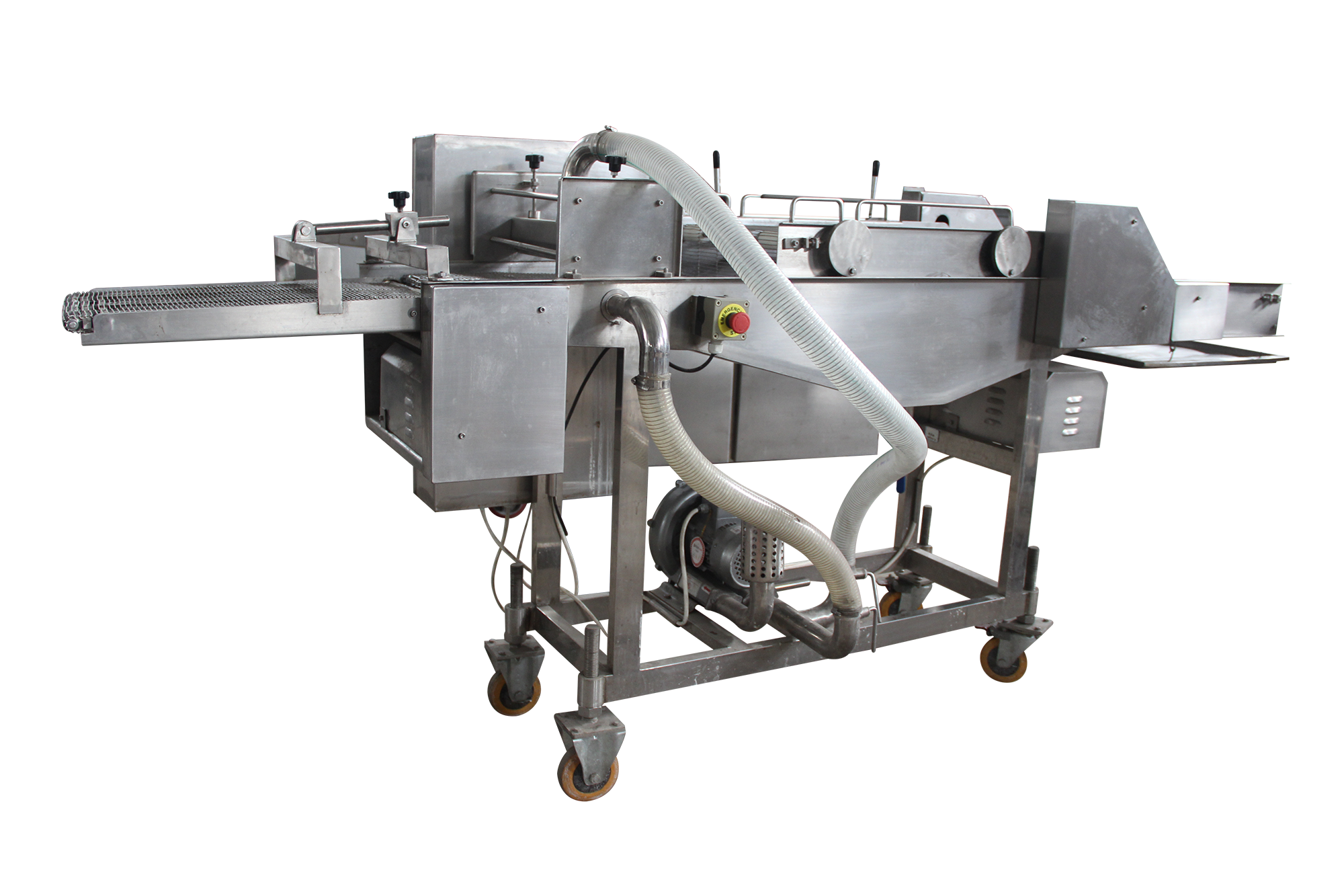 濃漿機(jī)是產(chǎn)品經(jīng)過(guò)上下輸送網(wǎng)帶夾持,在漿液中產(chǎn)品均勻粘附面漿。通過(guò)強(qiáng)有力的風(fēng)刀時(shí),把多余的漿液被吹落。防止多余的漿液然后輸入到下一工序。產(chǎn)品適合于天婦羅產(chǎn)品和裹濃漿產(chǎn)品。