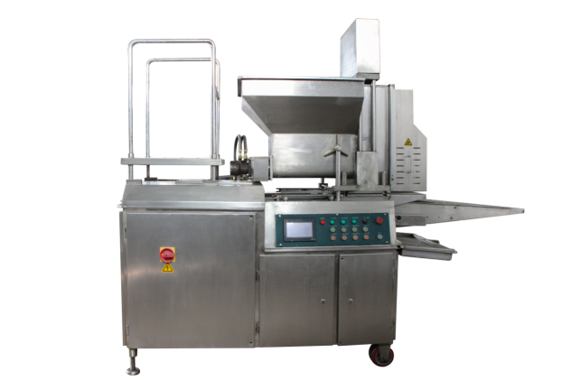 全自動土豆餅成型機(jī)將混合好的蔬菜或者煮熟土豆原料通過螺桿送料到料箱,通過模板可以加工成卡通形、魚形、數(shù)字形、三角形、長方形、圓形、心形及特殊形狀的產(chǎn)品,自動完成原料的充填,成型、輸出等工序。螺桿送料對原料的破壞性比較小,保持產(chǎn)品的口感。。蔬菜餅成型機(jī)與上粉機(jī)、上漿機(jī)、上面包屑機(jī)、油炸機(jī)、蒸煮機(jī)、速凍機(jī)、包裝機(jī)連成熟食全自動生產(chǎn)線,生產(chǎn)土豆餅.蔬菜餅.漢堡肉餅、雞塊、雞柳、魚排.牛排等產(chǎn)品。洋蔥圈成型機(jī)與其他涂裹設(shè)備生產(chǎn)洋蔥圈產(chǎn)品。