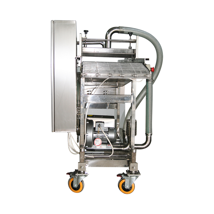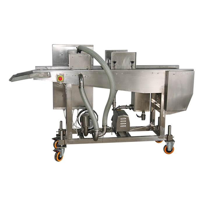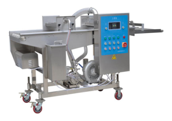 上稀漿機是通過漿幕和下部的承漿板把漿液均勻粘附在產(chǎn)品上,通過風(fēng)刀時,多余的漿液被吹掉。然后輸入到下一工序。淋漿機適用于上面包屑和上粉前的工藝。雞塊掛漿機適合于雞肉、牛肉、豬肉、魚、蝦等海鮮產(chǎn)品,雞塊裹漿機可以對市場上流行的雞腿,雞排,魚排,漢堡肉餅、麥樂雞塊、魚香漢堡肉餅、土豆餅、南瓜餅、肉串等產(chǎn)品進(jìn)行上漿處理,是食品工廠理想的上漿設(shè)備。